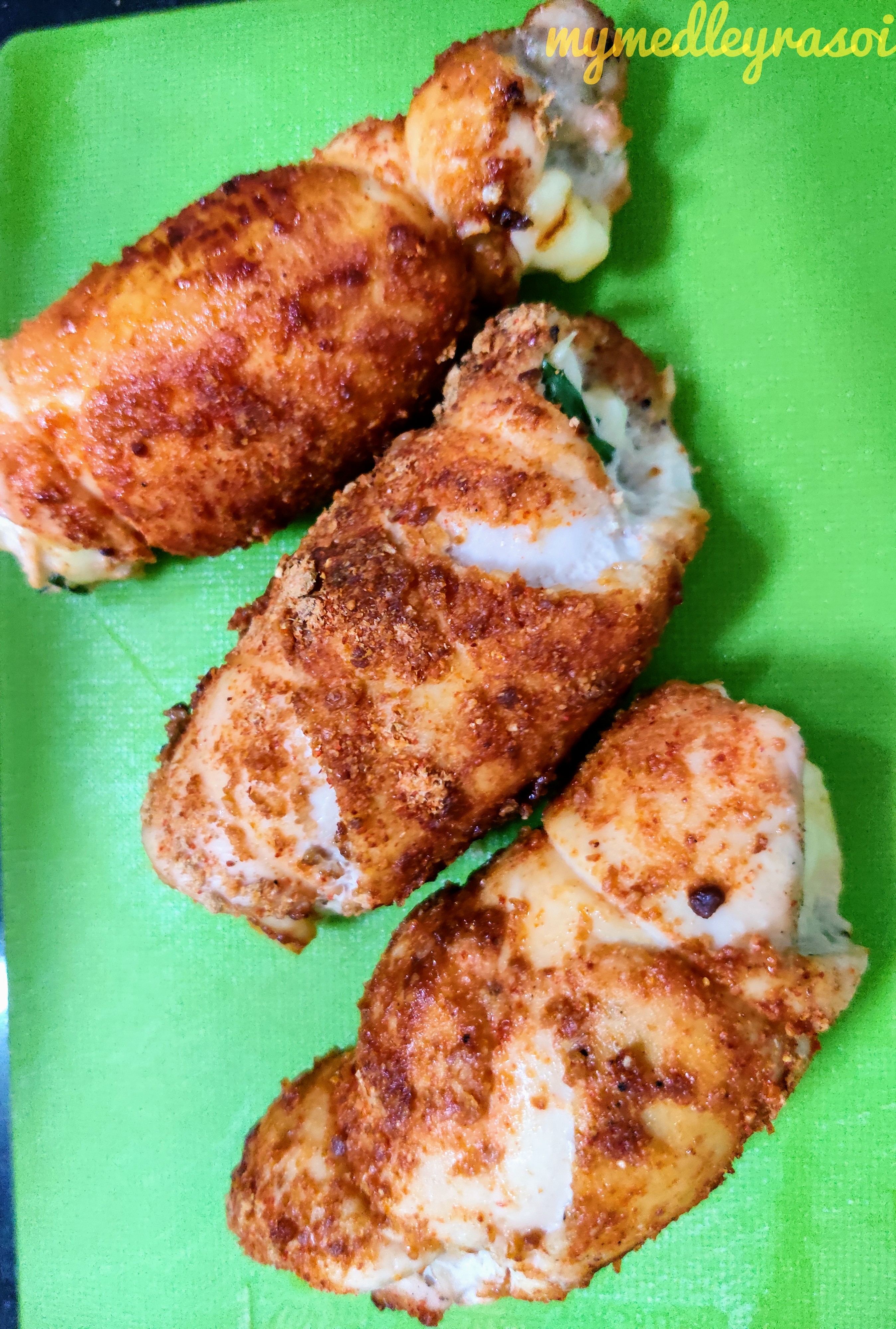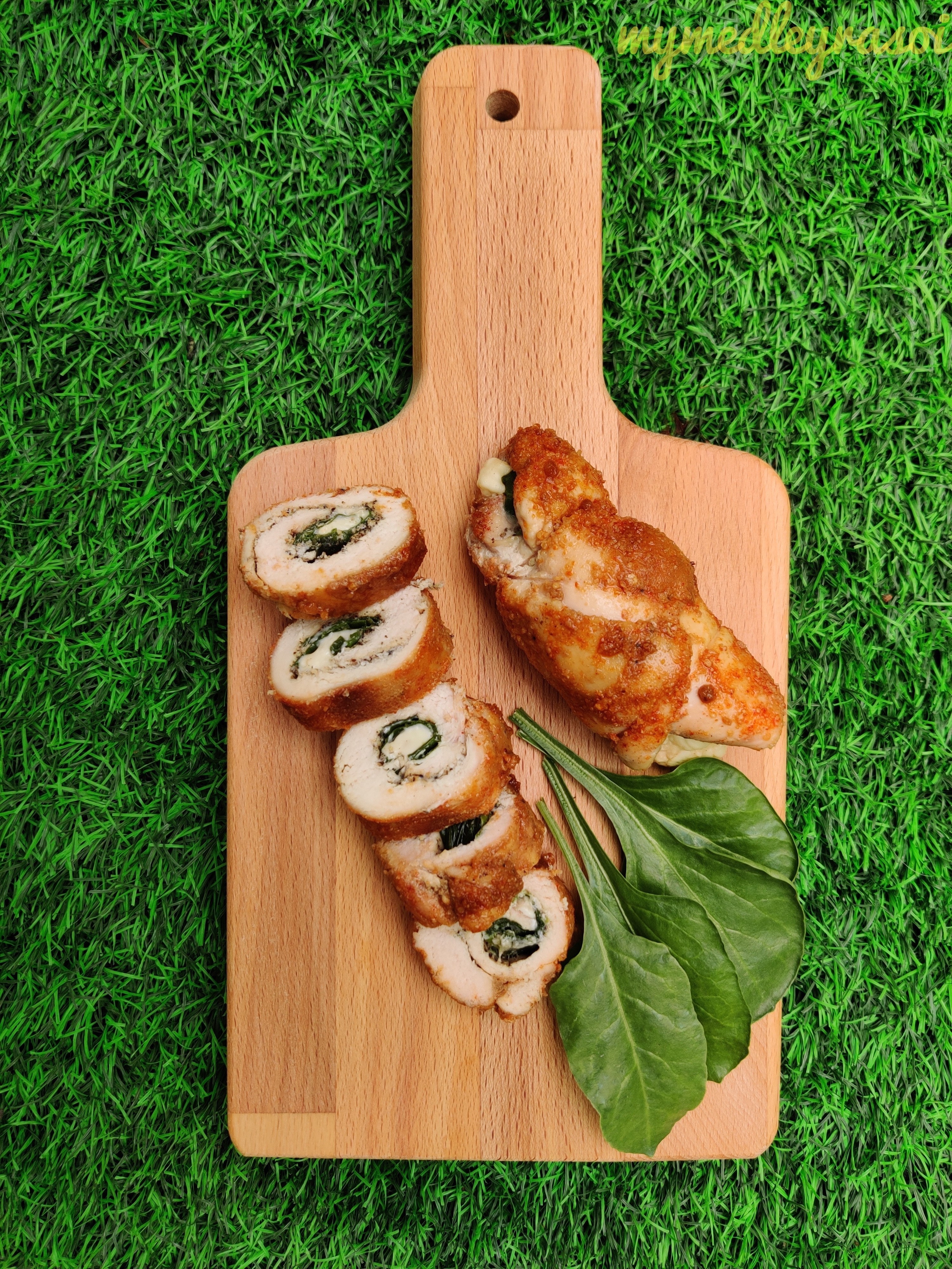 I enjoy lazy Sunday buffets for a lot of reasons. The wide variety… exploring different cuisines…champagne…not having to decide what to order for others…slow pace of the meal! I discovered chicken roulade in one of my buffet encounters. The cheese & spinach flavor with chicken was an instant hit with my taste-buds. So when the kiddo demanded for something very different AND pretty, my first thought was Chicken Roulade.